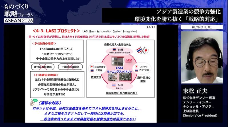 連結売上7.2兆円、従業員17万人規模の自動車部品メーカー大手、株式会社デンソー。同社の理事およびデンソー・インターナショナル・アジアの上級副社長を務める末松正夫氏が30年以上のASEAN事業経験から導いた答えは、単純な自動化推進とは一線を画す。