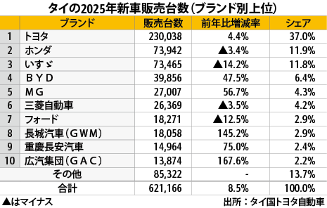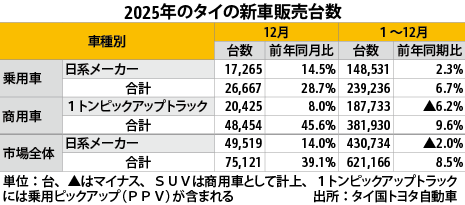 ※関連記事:2025年12月のタイの新車販売台数(表)