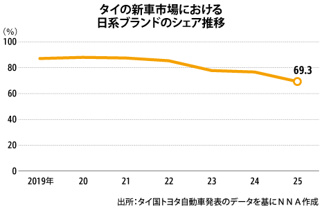 タイの自動車産業に精通している国士舘大学の助川成也・政経学部教授は、NNAに対して「日系のシェアが7割を切ったのは衝撃的な数値だ。しかし、タイの消費者調査によれば、今後5年間のEV購入意欲は非常に強く、以前の水準(日系が8~9割)に戻ることはないであろう。EV消費は、一過性のブームではなく、内燃機関車とEVのすみ分けの時代を見据える必要がある」と語った。