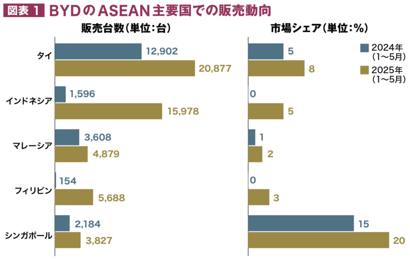 BYDの販売はASEAN全体で大きく伸びている(図表1)。