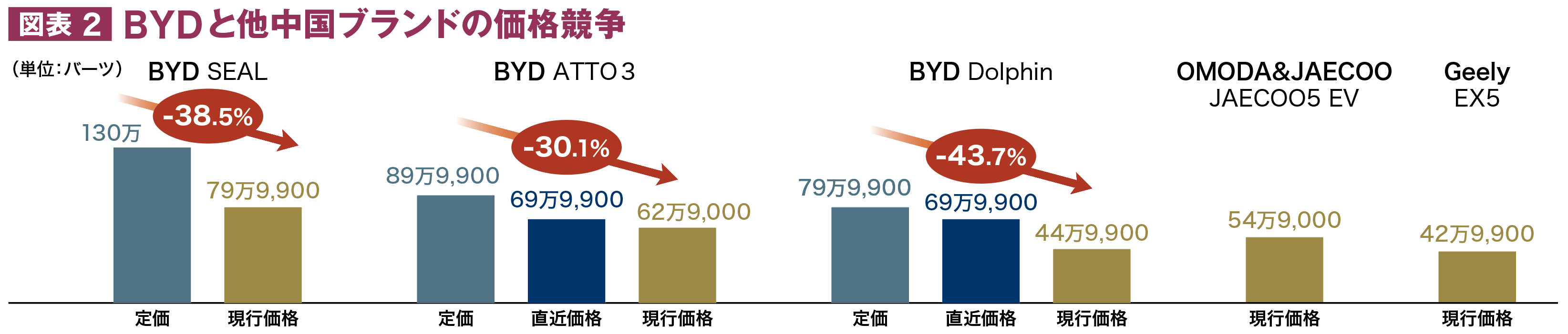 前に購入した既存顧客のことは考慮せず、なりふり構わず新規顧客の獲得を優先する。売り切りでなく、あくまで既存顧客へのアフターサービスを重視する日本勢のビジネスモデルとは対極にある。中国本土でも、シェア首位のBYDは2位のGeelyや3位のCheryと激しい価格競争を繰り広げており、中国本土での血みどろの競争がタイに持ち込まれた。
