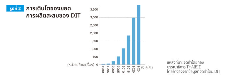 คุณคุริฮาระ ประธานบริษัท ได้กล่าวทบทวนถึงเส้นทาง 35 ปีว่า “ในช่วงแรกของการก่อตั้ง บริษัทฯ เน้นการผลิตและจำหน่ายสำหรับตลาดภายในประเทศเป็นหลัก ก่อนจะขยายกำลังการผลิตอย่างต่อเนื่องในช่วงปี 1990-2000 โดยในปี 2010 ยอดการผลิตสะสมเฉพาะเครื่องคอยล์ร้อน (Outdoor Unit) ทะลุ 10 ล้านเครื่อง และทะลุ 25 ล้านเครื่อง ในปี 2020 (อ้างอิงจากรูปที่ 2 ในหน้าก่อนหน้า) ปัจจุบัน DIT ได้พัฒนาไปสู่การเป็นโรงงานแม่ที่รับผิดชอบการบริหารจัดการ ควบคุมดูแลงานด้านการพัฒนา การจัดซื้อ คุณภาพ สิ่งแวดล้อม และบุคลากรในภูมิภาคเอเชียและโอเชียเนีย ทั้งยังทำหน้าที่เป็นฐานส่งออกสำคัญอีกด้วย” ยิ่งไปกว่านั้น คุณคุริฮาระยังแสดงความภาคภูมิใจว่า “ในกลุ่มบริษัทเรามีเพียงประเทศไทยเท่านั้นที่สามารถผลิตผลิตภัณฑ์ได้หลากหลายประเภท ตั้งแต่ผลิตภัณฑ์สำหรับที่พักอาศัยจนถึงผลิตภัณฑ์เชิงพาณิชย์ เทคโนโลยีการผลิตของไทยเป็นความภาคภูมิใจในระดับโลก”