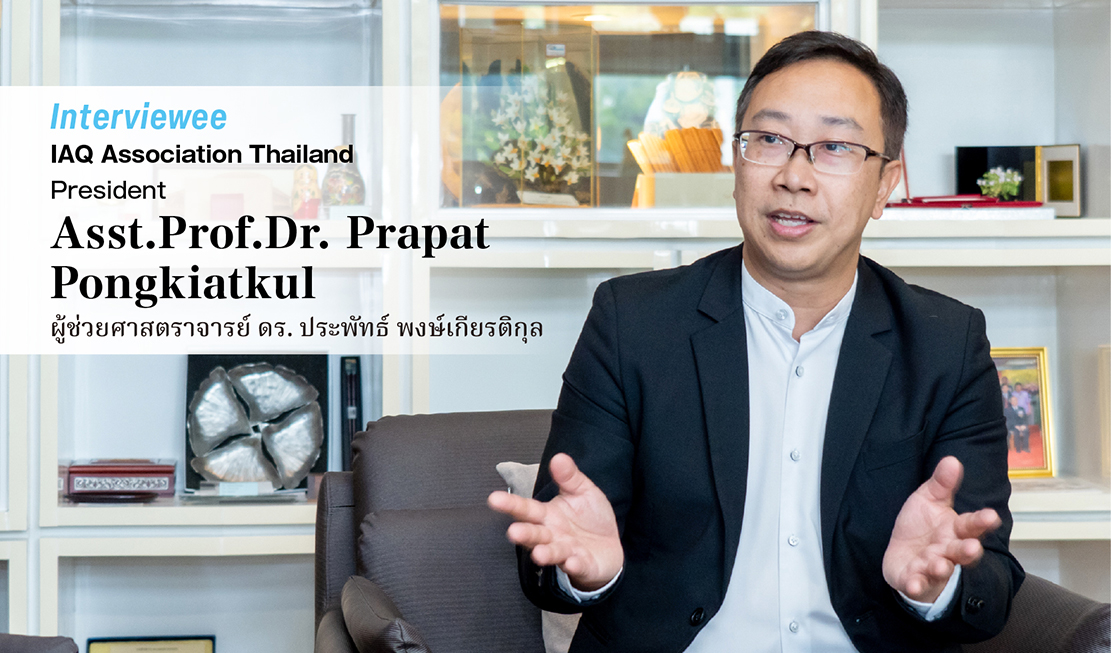 ผู้ช่วยศาสตราจารย์ ดร. ประพัทธ์: ผมดำรงตำแหน่งหัวหน้าภาควิชาวิศวกรรมสิ่งแวดล้อม มหาวิทยาลัยเทคโนโลยีพระจอมเกล้าธนบุรี (KMUTT) และยังเป็นนายกสมาคมคุณภาพอากาศภายในอาคารแห่งประเทศไทย สมาคมของเราเริ่มต้นจากการรวมตัวกันของผู้ที่ตั้งใจจะปรับปรุง IAQ โดย DIT ได้ให้ความร่วมมือในฐานะพันธมิตรที่สำคัญตั้งแต่เริ่มก่อตั้งสมาคม ในด้านงานวิจัยและโครงการทดลองต่าง ๆ องค์ความรู้และข้อมูลที่ได้รับจากความร่วมมือนี้ ได้ถูกนำไปใช้ในการให้ข้อมูลแก่หน่วยงานภาครัฐ ซึ่งถือเป็นพลังสำคัญในการขับเคลื่อนกิจกรรมของสมาคม