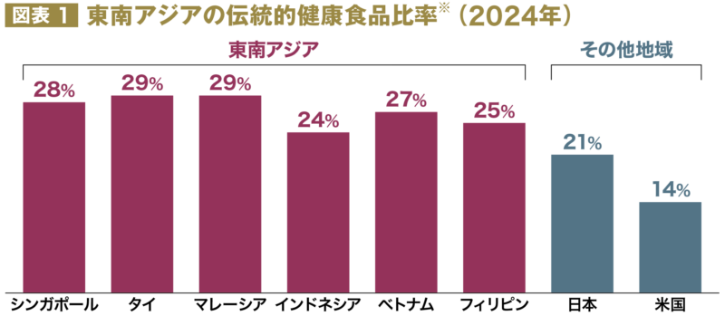 東南アジアでは、多民族・多宗教社会という特性がウェルネス消費のあり方を大きく左右している。信仰や伝統が日常生活に深く根付いており、健康食品やサプリメントの受容性は宗教的・文化的要素と不可分である(図表1)。