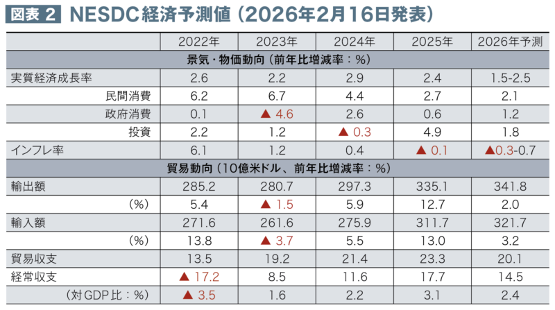 タイ国家経済社会開発委員会(NESDC)の2月16日の発表によると、2025年通年の経済成長率は前年比+2.4%となり、2024年通年の同+2.9%(改定値)から減速した。タイでは2022年以降、成長率が2%台の状況が続いている。1人当たり名目国内総生産(GDP)は8,201米ドルとなり、前年の7,539米ドルから増加した。