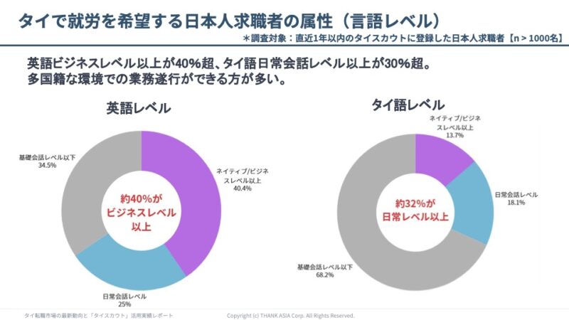 タイで就労を希望する日本人求職者の属性(言語レベル) 出所:サンクアジア