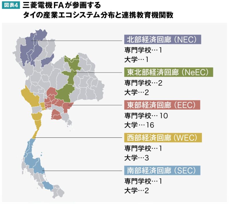三菱電機FAは、2019年に設立されたEECオートメーションパークの創設メンバーとして参画している。同パークはEEC事務局、TPA、ブラパー大学、民間企業などによる産官学の協力枠組みに基づいて運営されており、同社はハードウェアやソフトウェアなどの技術提供に加え、研修カリキュラムの開発を担っている。