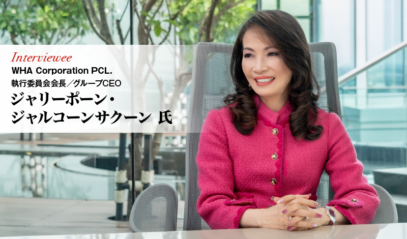 物流や工業開発などの主要事業を通じて、こうした動きを牽引する存在の一つがWHA Corporation PCL.(以下、WHAグループ)だ。今回は、WHAグループ最高経営責任者(CEO)であるジャリーポーン・ジャルコーンサクーン氏に、タイが「選ばれる国」となる理由と、同グループが掲げる新たな共創戦略について聞いた。